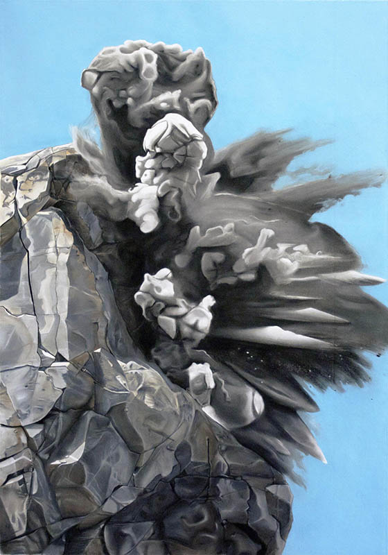 Les dessins au pastel et mine de plomb de Guillaume Estoppey nous sont offerts tel des fragments d'un univers parallèle mystérieux et inquiétant, que l'artiste divise et organise en catégories rigoureuses, comme l'ébauche d'une encyclopédie en devenir. Dans cette série de dessins, les architectures s'insèrent littéralement dans la matière rocheuse. Elles semblent tour à tour creusées dans le roc, ou construites adossées à la falaise ou encore englouties dans une lave qui se serait solidifiée après quelque épisode apocalyptique. Dans d'autres dessins, il ne reste que les vestiges d'une cité disparue, redevenue désert rocheux aux aspérités demeurées trop régulières. Les paysages comme les intérieurs sont désertés complètement, sans qu'aucune trace de vie ne subsiste. L'étrangeté due à cette absence humaine est accentuée par la régularité trop parfaite des structures architecturales qui en deviennent presque des trompe-l'œil vu certains formats monumentaux. Les titres donnés par l'artiste offrent une nouvelle perspective à ces images, des sensations (chaleur et sécheresse), des ressentis émotionnels (les dimanches d'automne, lassitude et bonheur continu), des métaphores (dettes et oublis). Les dessins prennent alors une dimension autre, plus profonde, comme si une clé était offerte pour brouiller les pistes et en même temps entrouvrir le passage vers une logique toute personnelle qui augmente le mystère. A la complexité de ces deux niveaux de lecture s'ajoute l'hyperréalisme des rendus s'opposant à une image au final surréaliste qui, par le velouté de la matière pastel, redevient enfin purement picturale.